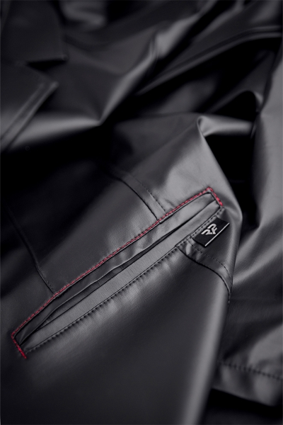 La veste longue sans manche Marco est fabriquée par la marque Regnes Fetish en tissu élastique effet wetlook noir de haute qualité. Ce tissu est agréable au toucher et son élasticité fera cette veste se placer au plus prêt du corps.
